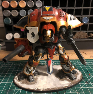 The past week I was given an interesting opportunity; take an already assembled and painted model (in this case, a super epic one!) and to "Jacksify" it for our local game store. Once finished, it would be brought to a Warhammer 40,000 tournament to become part of the 'wooden spoon' for last place. Though there was nothing wrong with the original paint job, the colour-scheme needed to be simplified to match that of the store and I wanted to experiment with some of the details to add some more visual interest.